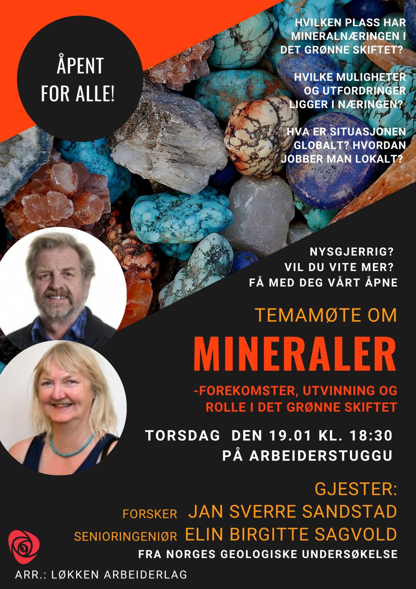 Åpent temamøte om mineraler: mineralforekomster, mineralutvinning, næringens rolle inne i det grønne skiftet, muligheter og utfordringer.