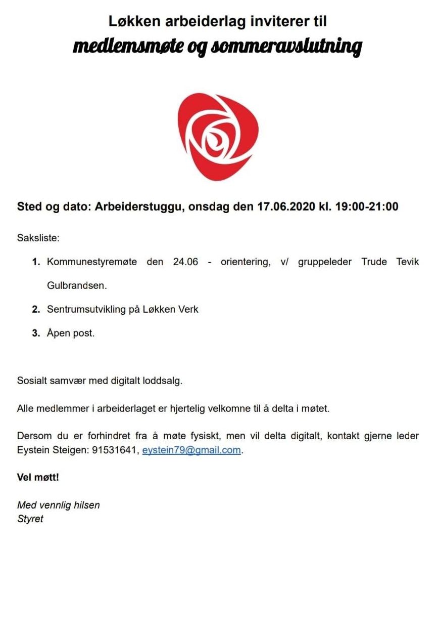 Dersom du er forhindret i å møte fysisk, men vil møte digitalt, kontakt gjerne leder Eystein Steigen, mob. 91531641 eller [email protected] .